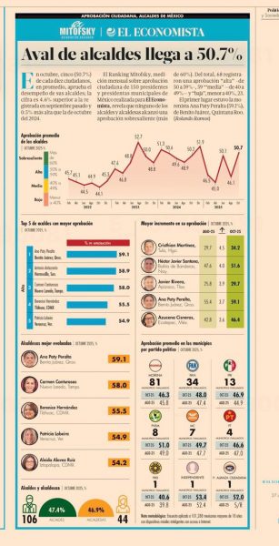 El estudio revela que, por segunda ocasión en lo que va del año, la aprobación promedio de los alcaldes del país superó los 50 puntos porcentuales, consolidando a Ana Paty como una de las figuras municipales con mayor respaldo social y liderazgo político en México.