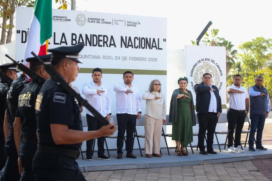 Playa del Carmen.- El Gobierno de Playa del Carmen, encabezado por la presidenta municipal Estefanía Mercado, conmemoró el Día de la Bandera con una ceremonia cívica en la que se rindieron honores al Lábaro Patrio, reafirmando que México es una nación fuerte y que los colores de la enseña nacional representan la historia, la unidad y la fortaleza del pueblo mexicano.