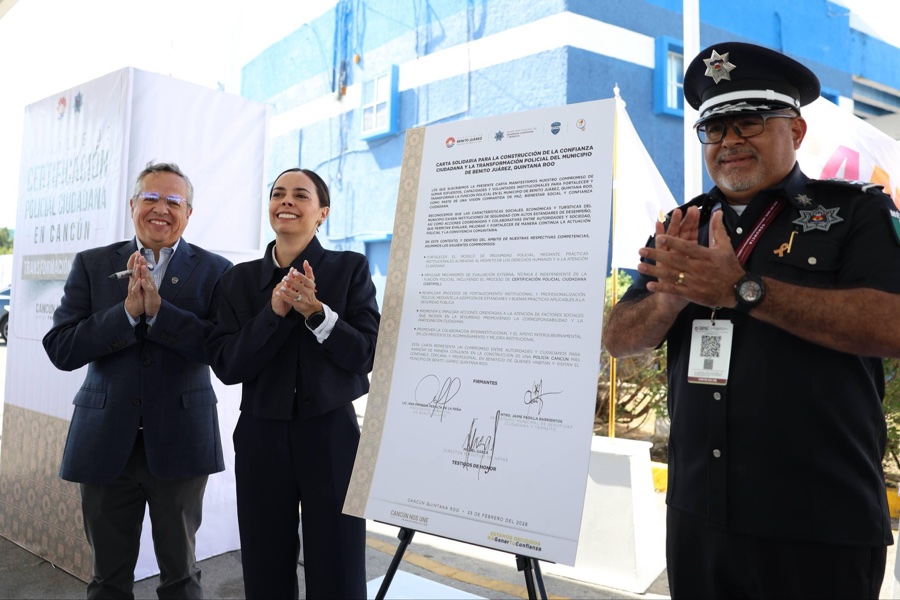 Cancún- “Hoy damos un paso decisivo en la transformación de nuestra policía y hablamos de cambios de fondo, estructurales, renovar la institución desde fondo para dejar un legado duradero en la policía de Cancún”, afirmó la presidenta municipal, Ana Paty Peralta, en el arranque de la Certificación Policial Ciudadana (Certipol), como parte de los trabajos para crear una corporación certificada sin espacios para la corrupción.