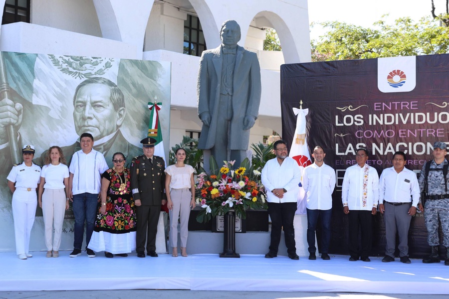 Al frente de decenas de representantes oaxaqueños, tierra donde nació dicha figura, la primera autoridad municipal recordó la frase célebre del prócer de la Patria: “Entre los individuos, como entre las naciones, el respeto al derecho ajeno es la paz”, destacando que este principio recuerda que México es y seguirá siendo una nación libre, soberana e independiente, un pueblo que ha sabido defender su dignidad y su autodeterminación.
